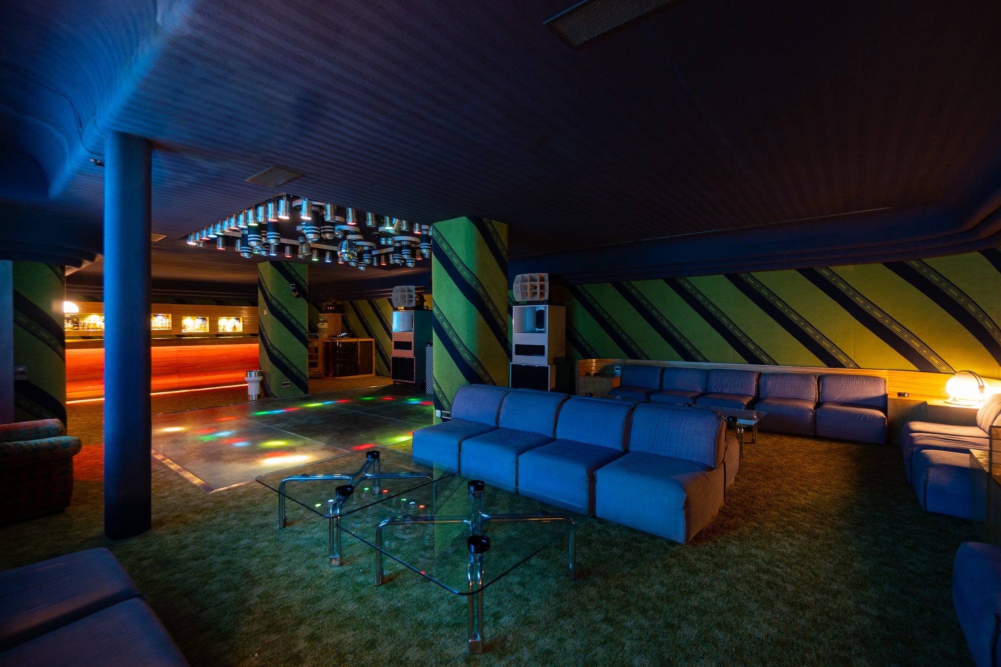 Hidden beneath Casa Axis, the underground space has been preserved as originally designed in the 70s, now elevated by a bespoke sound system from Admire Audio.